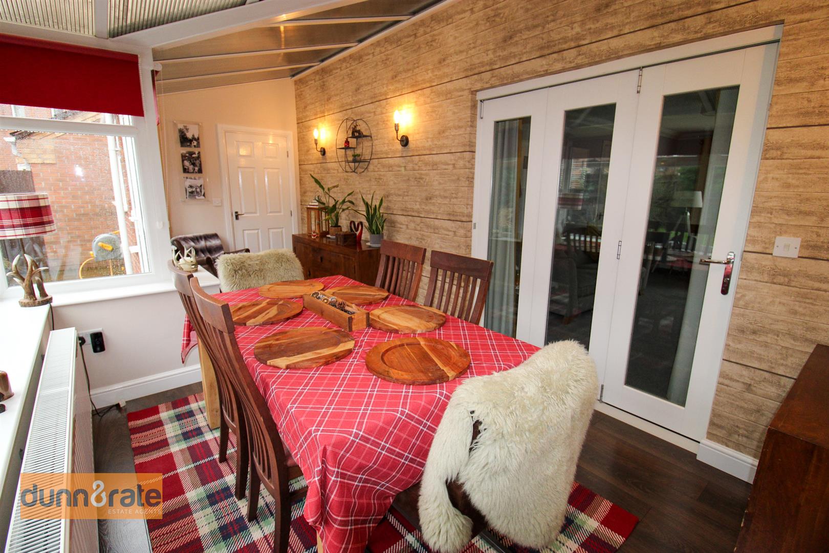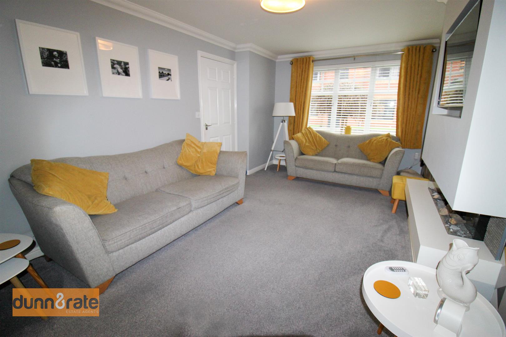 A UPVC window looks out to the front aspect. Bifold doors open into the dining room. Electric fireplace, radiator and TV point.