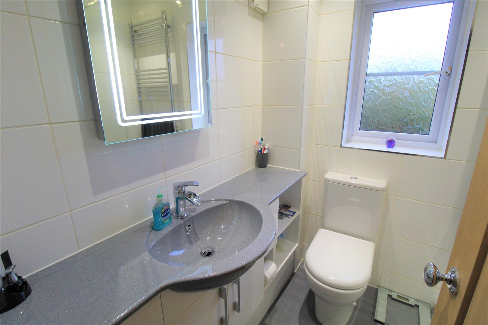 A double glazed window overlooks the front aspect. Low level W.C and wash hand basin with tiled splashback. Radiator.