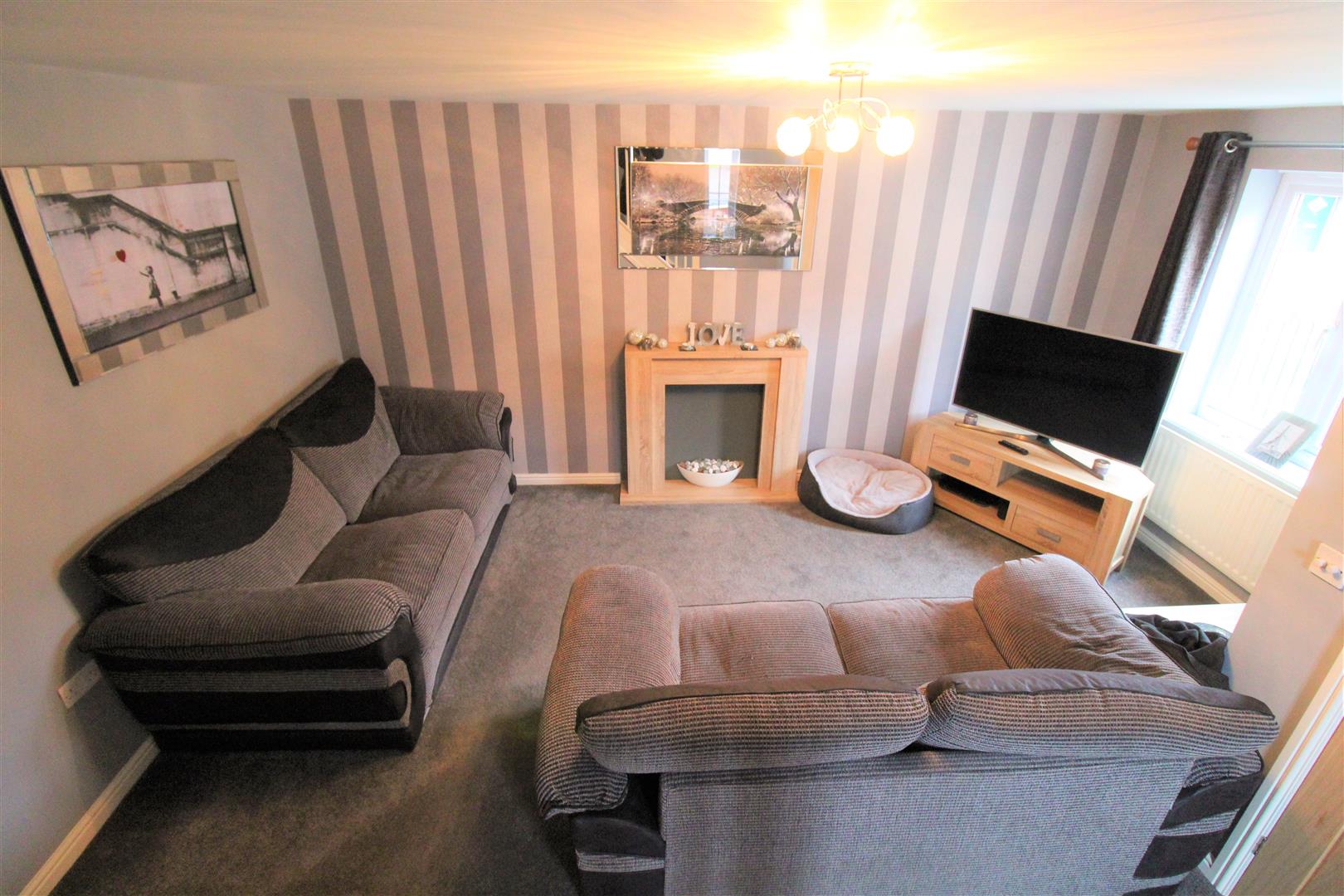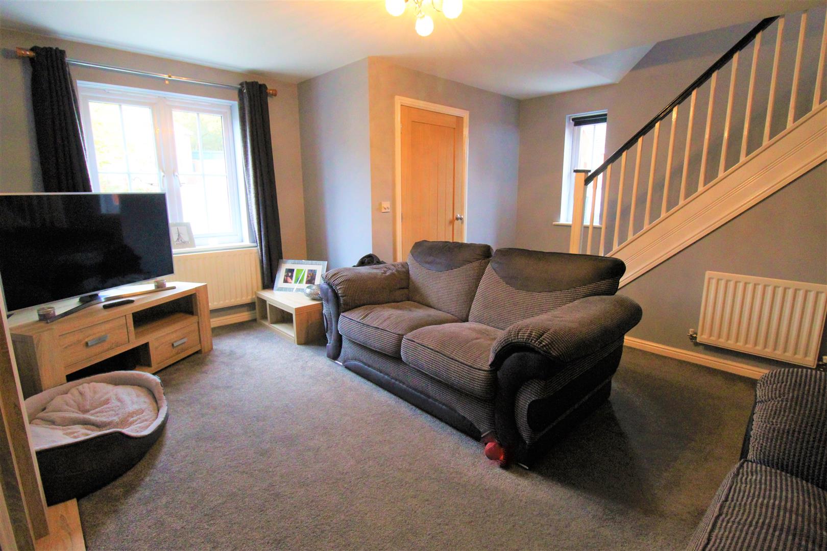 A double glazed window overlooks the front and one to the side aspect. Fireplace housing electric feature fire. Television point and two radiators. Stairs leading to the first floor.