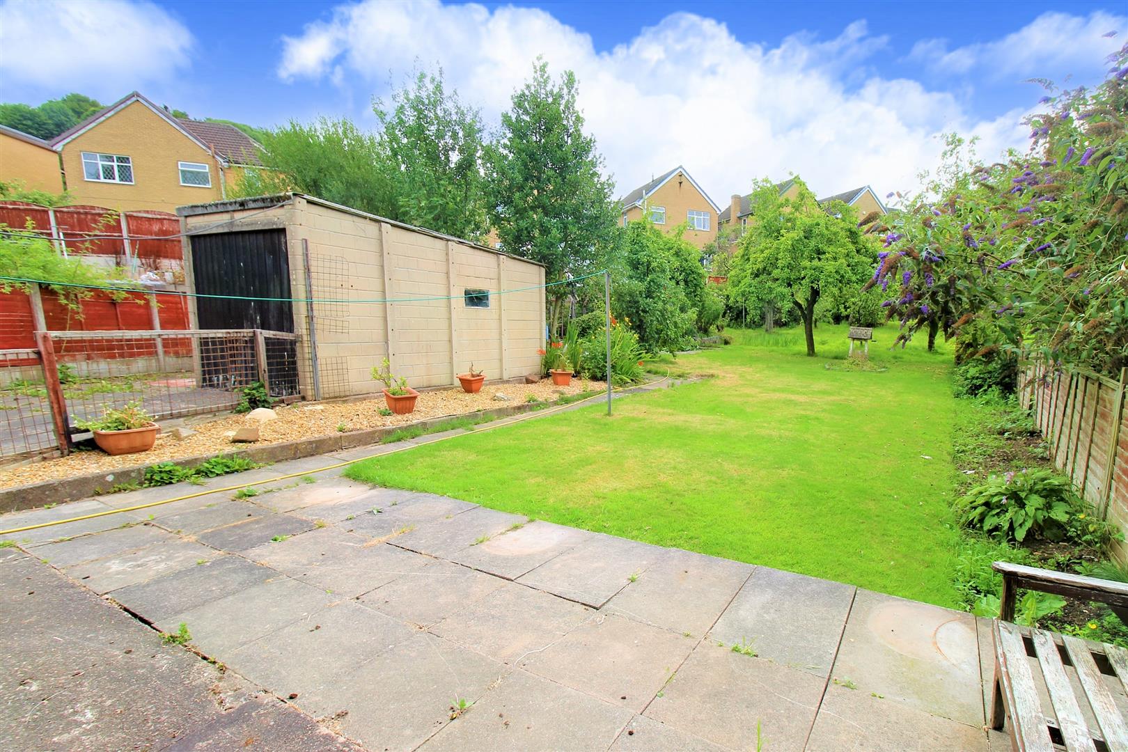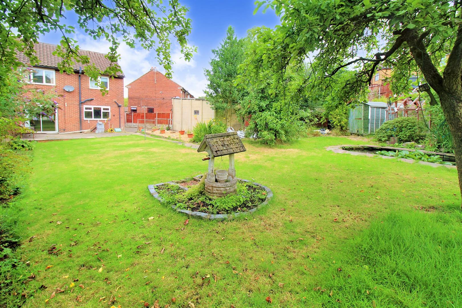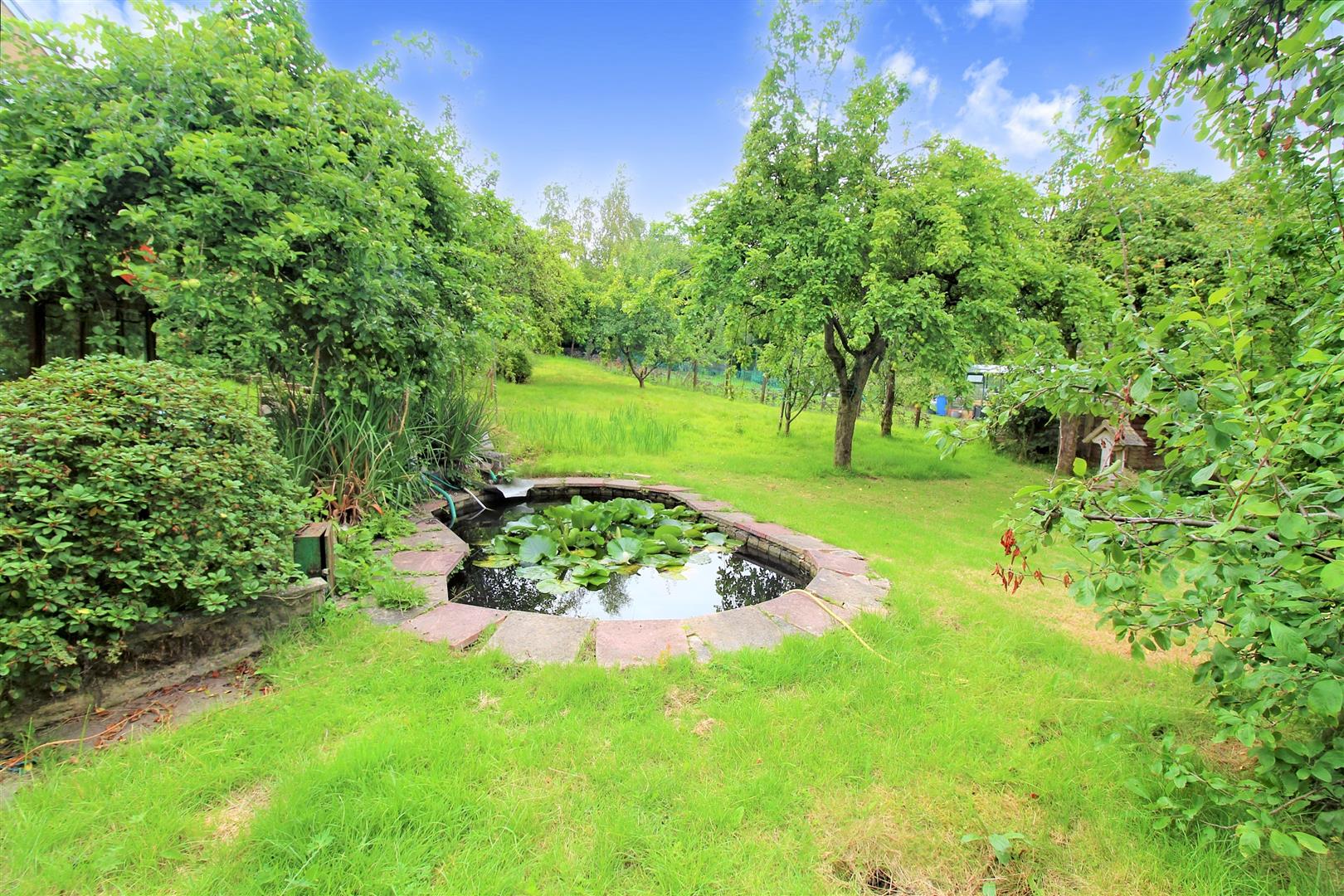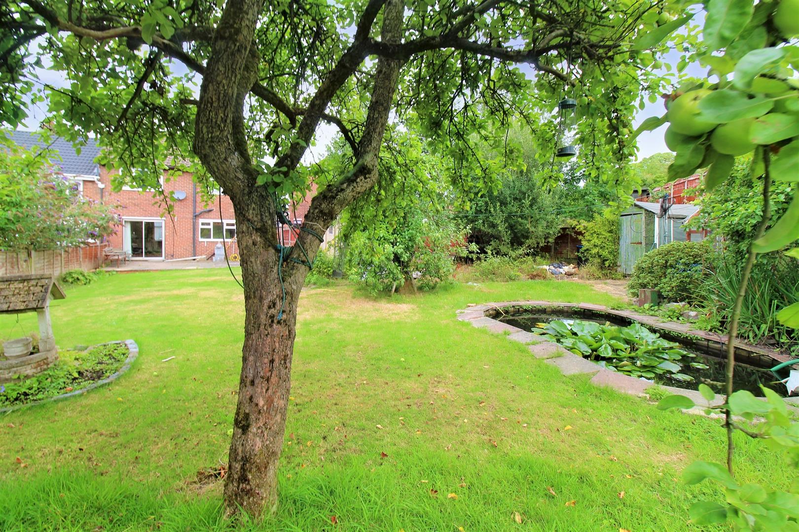 To the front property has a paved driveway leading down the side of the property to the garage. laid with a patch of grass and flower bed border. To the rear the property sits on a substantially large garden plot, laid mainly to lawn with mature fruit trees and shrubbery. There is paved patio seating area, garden pond and greenhouse and shed area.