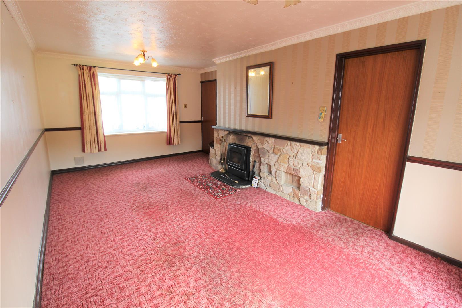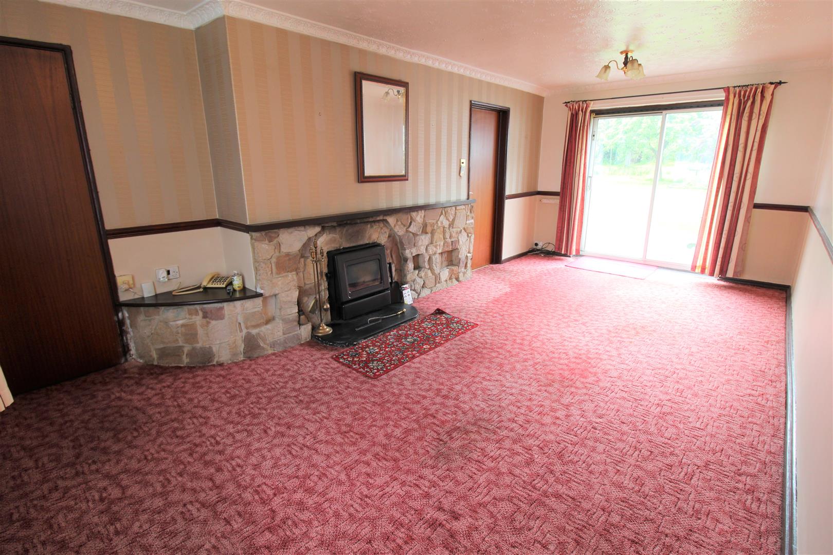 A double glazed window overlooks the front aspect with double glazed sliding doors leading out to the rear. Fireplace house coal fire. Television point.