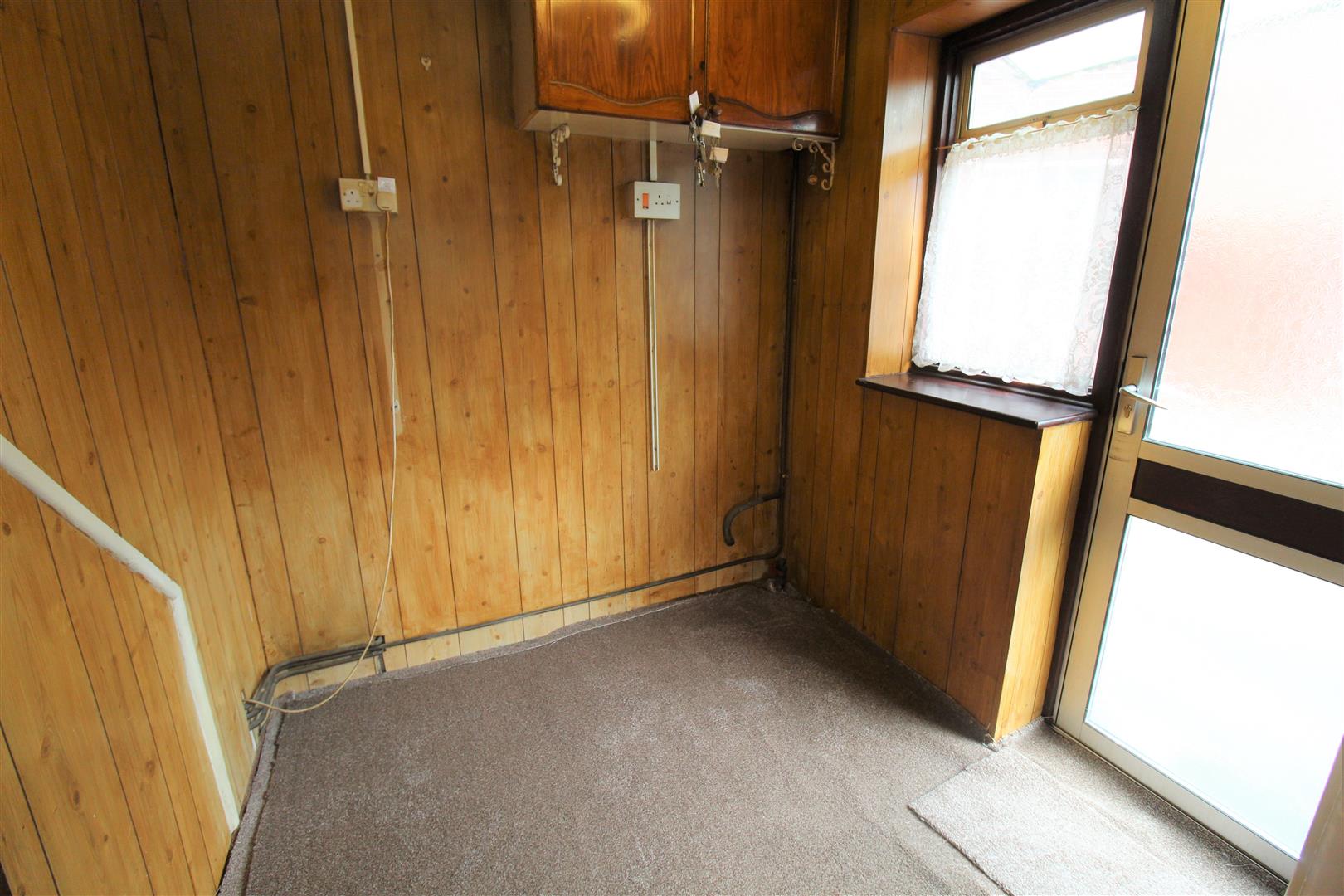A double glazed window overlooks the side aspect coupled with an access door leading out to the side of the property. Space and plumbing for fridge/freezer and tumble dryer. Under stairs storage cupboard. Electric cooker point.