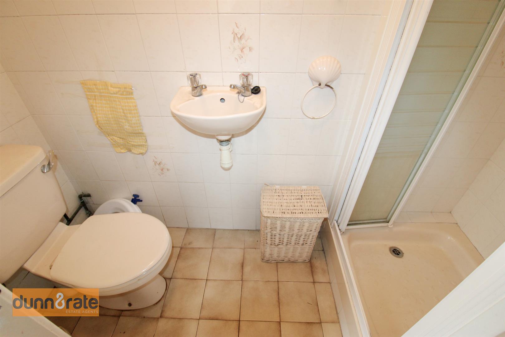A double glazed window overlooks the side aspect. Fitted with a suite comprising shower unit with electric shower, low level W.C and wash hand basin. Fully tiled walls and extractor fan. Radiator.