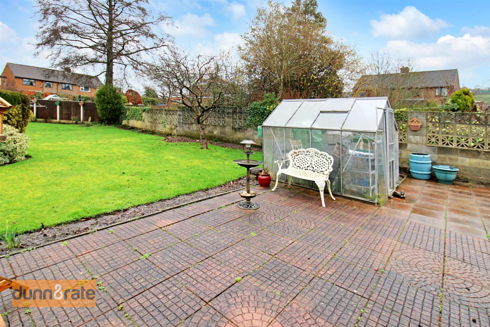 To the front there is a tarmacadam driveway leading to the entrance and garage coupled with planted border with mature shrubs. To the rear the garden is fully enclosed with a side access gate. The rear is laid with a large lawn with flower bed borders and a paved patio seating area. Garden shed and greenhouse.