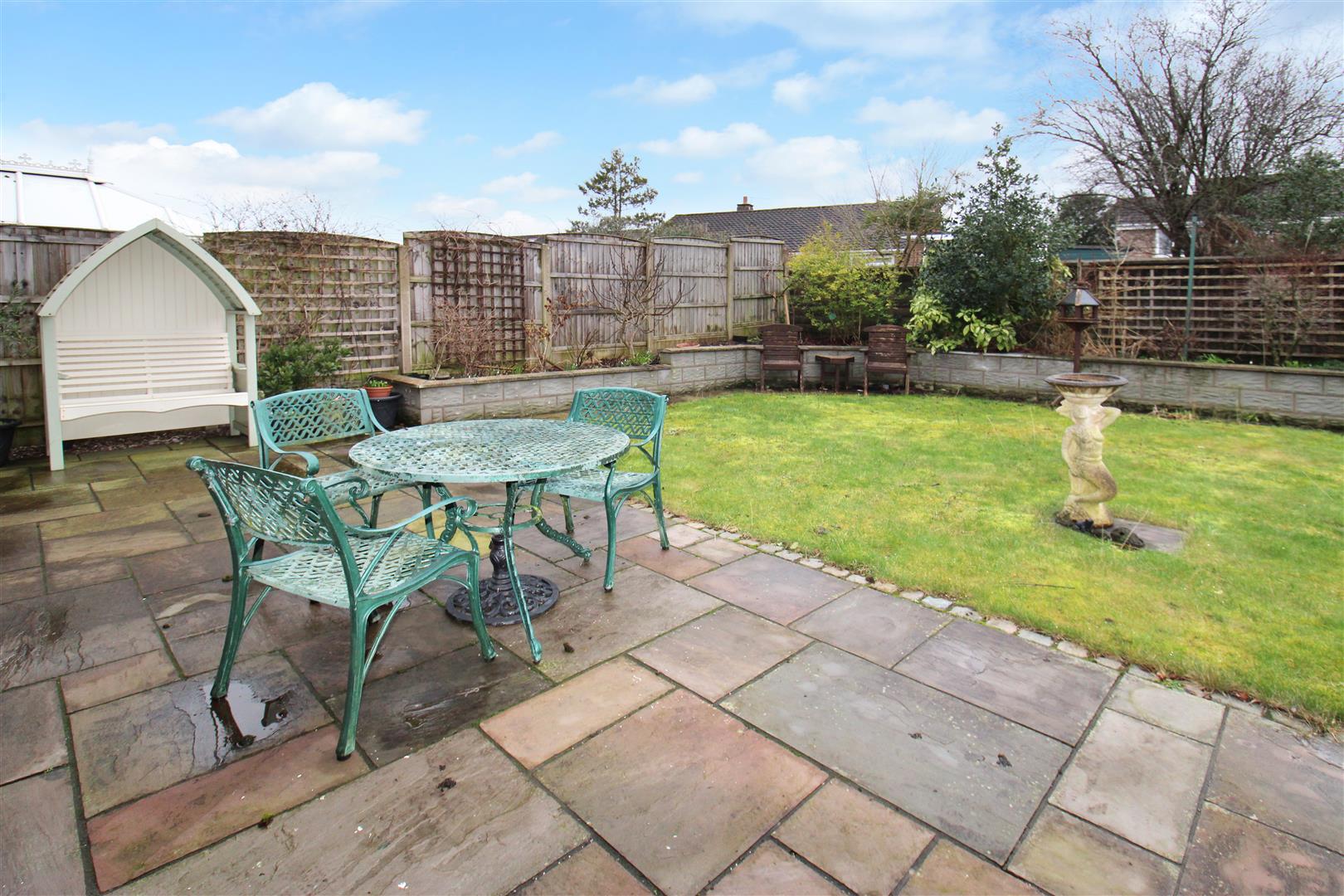 To the front there is a block paved driveway leading to the garage, the frontage is laid to lawn with established flower bed borders. To the rear the garden is a good size and fully enclosed. The garden has a paved patio seating area with lawn and raised planter bed borders. Steps lead up to a greenhouse and planting area.
