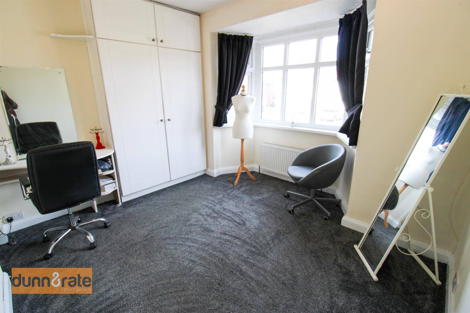 A double glazed bay window looks out to the front aspect. Fitted wardrobes, dressing table and under stair storage. Radiator.