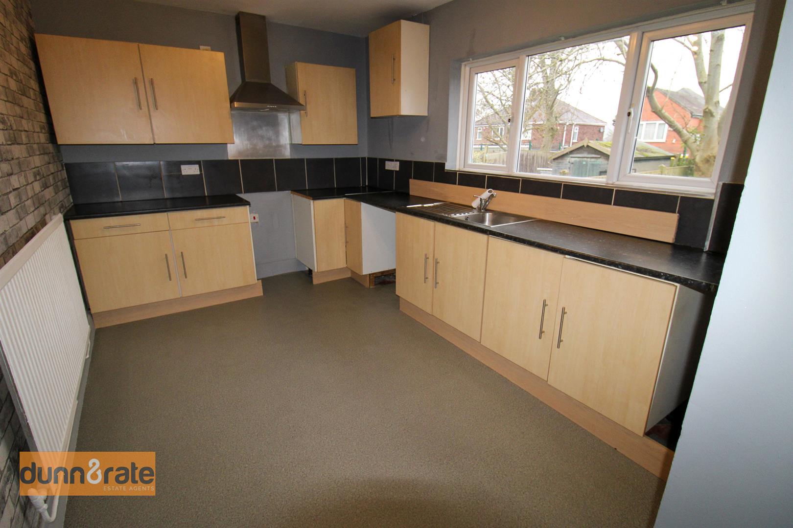 Double Glazed window to the rear aspect. Radiator. Fitted kitchen with a stainless steel sink unit and range of wall and base units. Partially tiled above kitchen units. Space for electric oven and hob with cooker hood already fitted above. Space for dishwasher. Cupboard space to the side for storage. Doorway leading to side entrance.