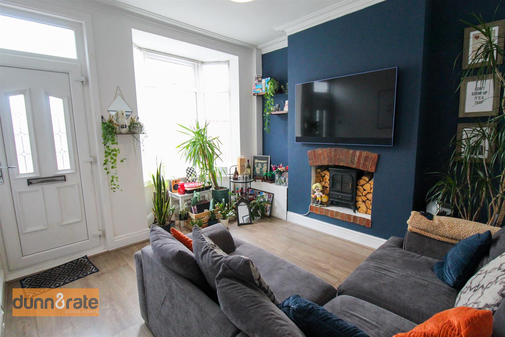A UPVC door opens to the front and a UPVC bay window looks out to the front aspect. Electric fireplace and radiator.