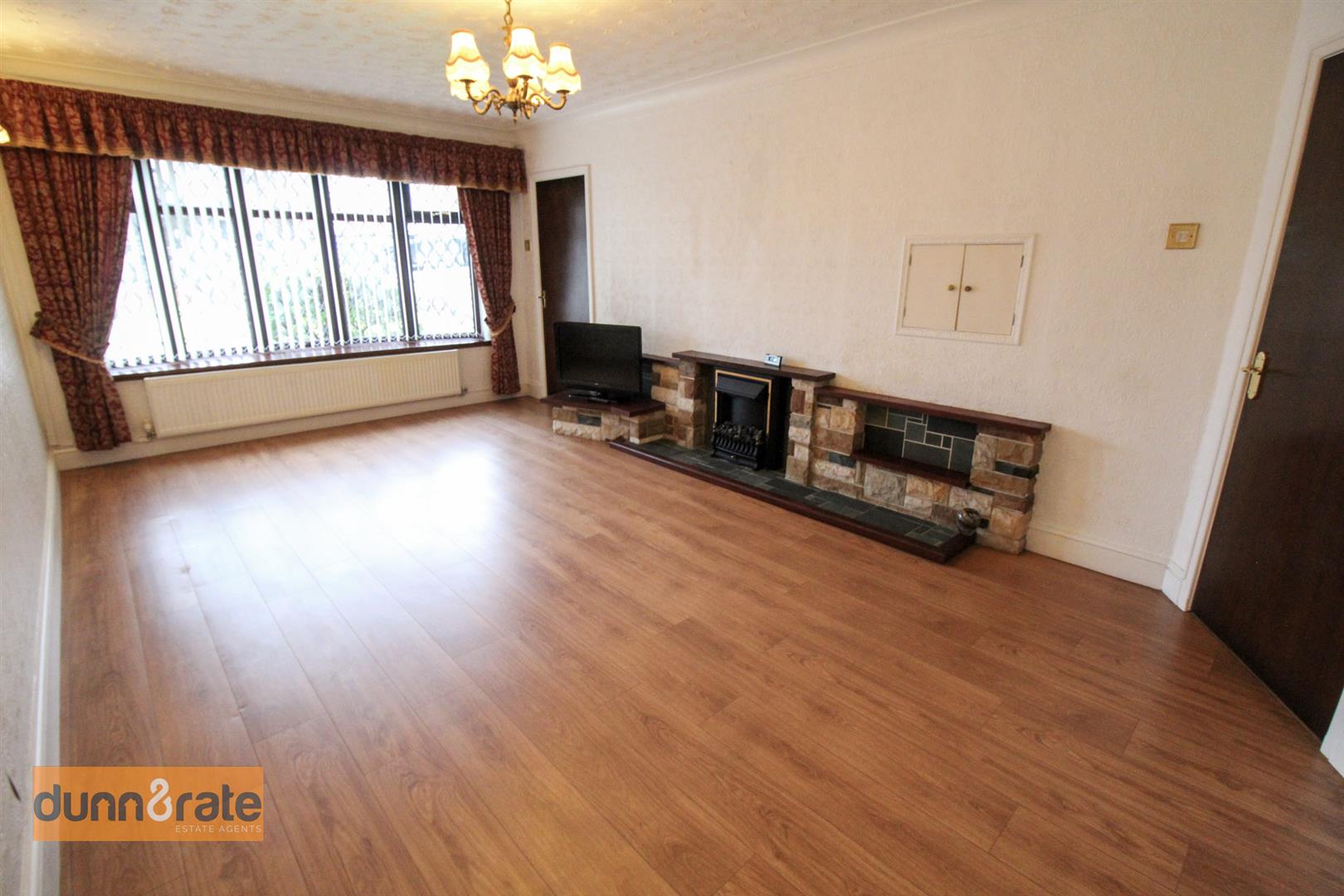 A large lounge with bow double glazed window to the front aspect. Fire place housing electric fire. Television point. Wall lights and radiator.