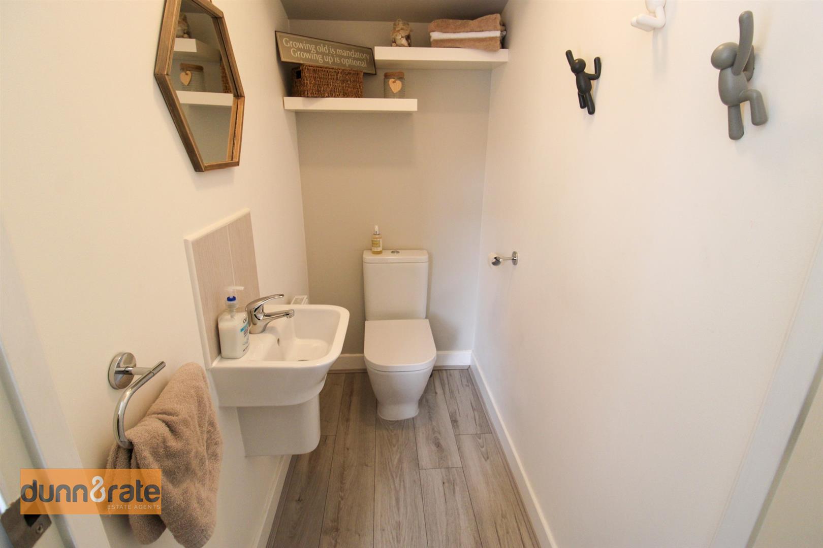 A double glazed window overlooks the rear aspect. Fitted with a suite comprising a double shower unit, low level W.C and wash hand basin. Extractor fan and ladder style towel radiator.