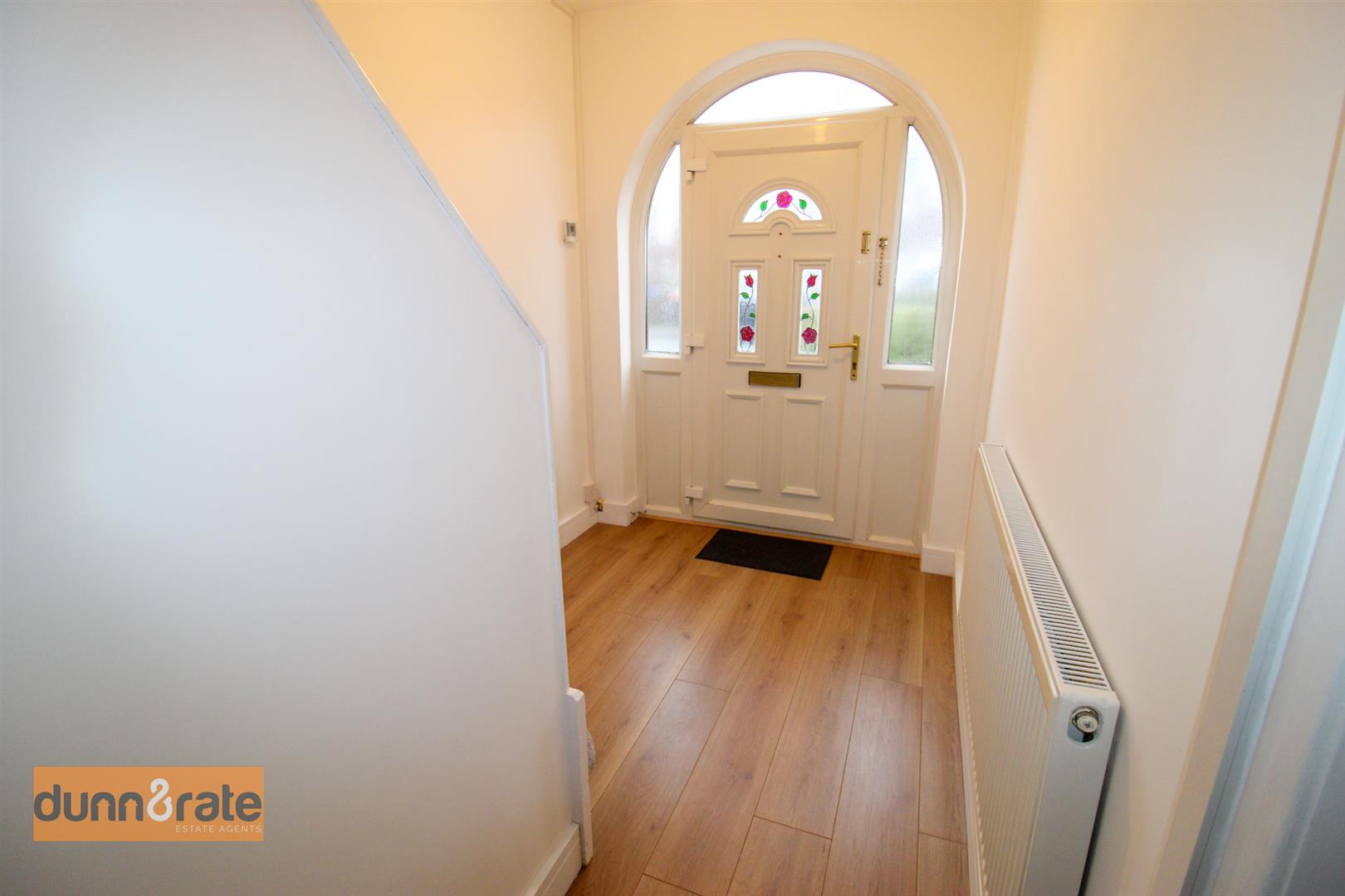 The property has a double glazed entrance door to the front aspect. Stairs lead to the first floor with an under stairs storage cupboard with double glazed window to the side. Radiator.