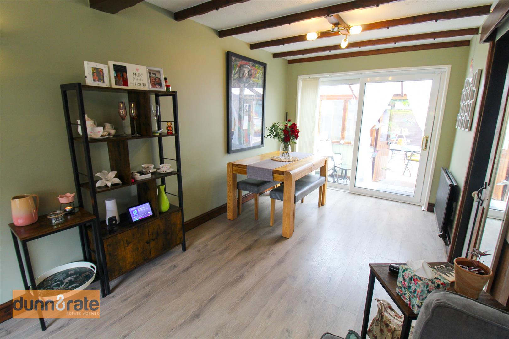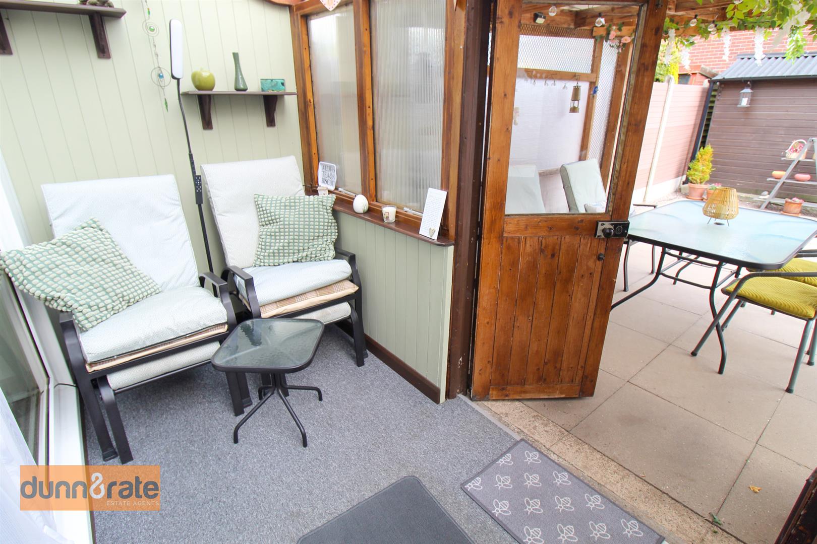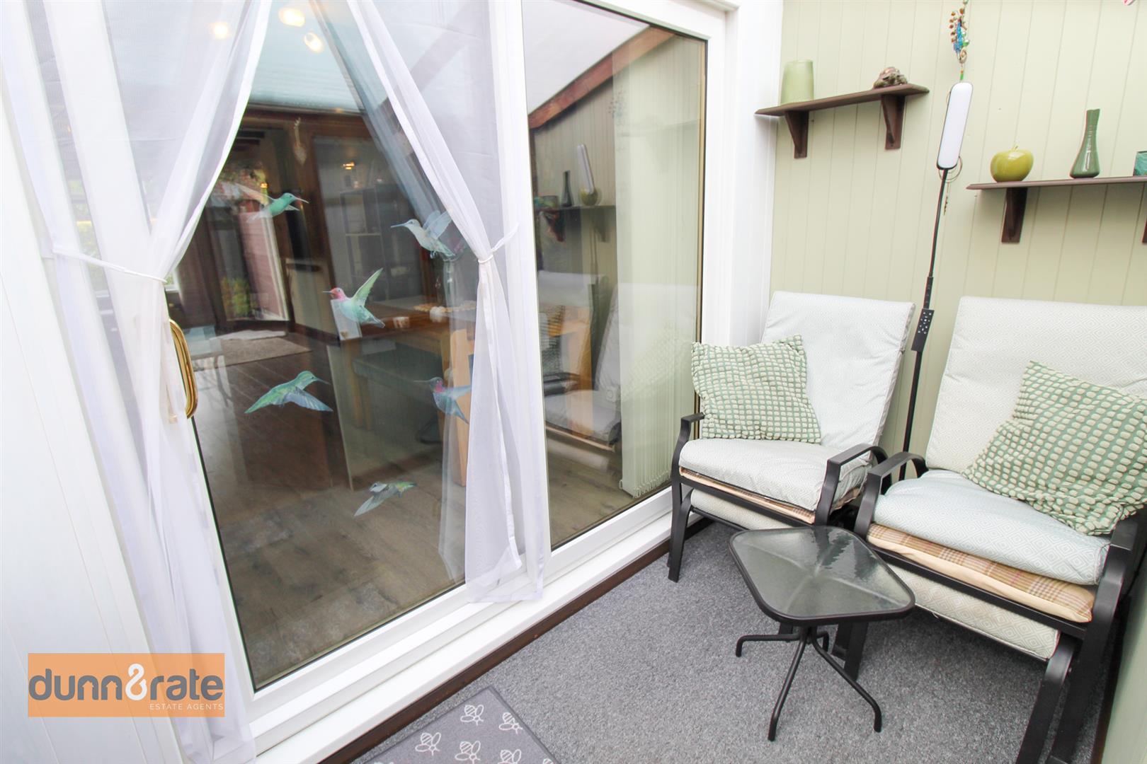 A double glazed window overlooks the front aspect coupled with double glazed sliding patio doors leading into the sun room. Television point and two radiators. Space for table and chairs.