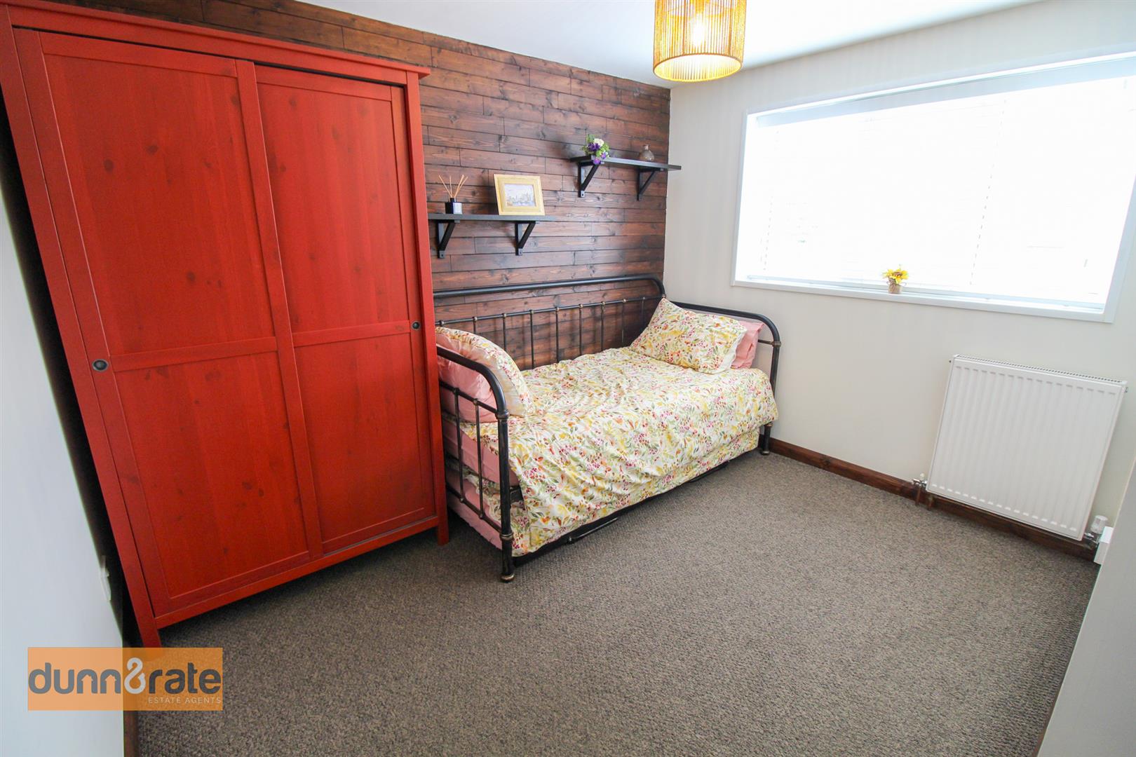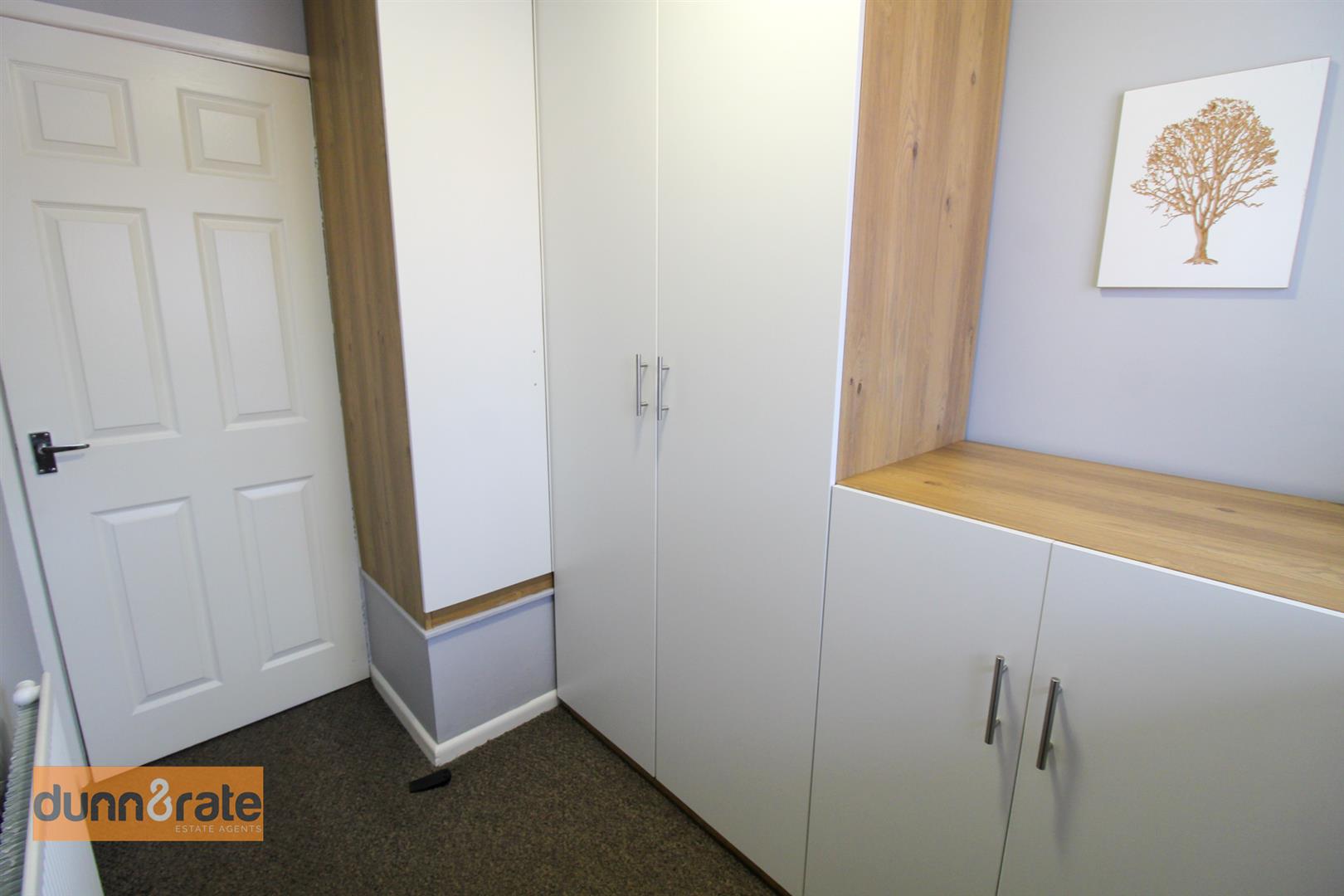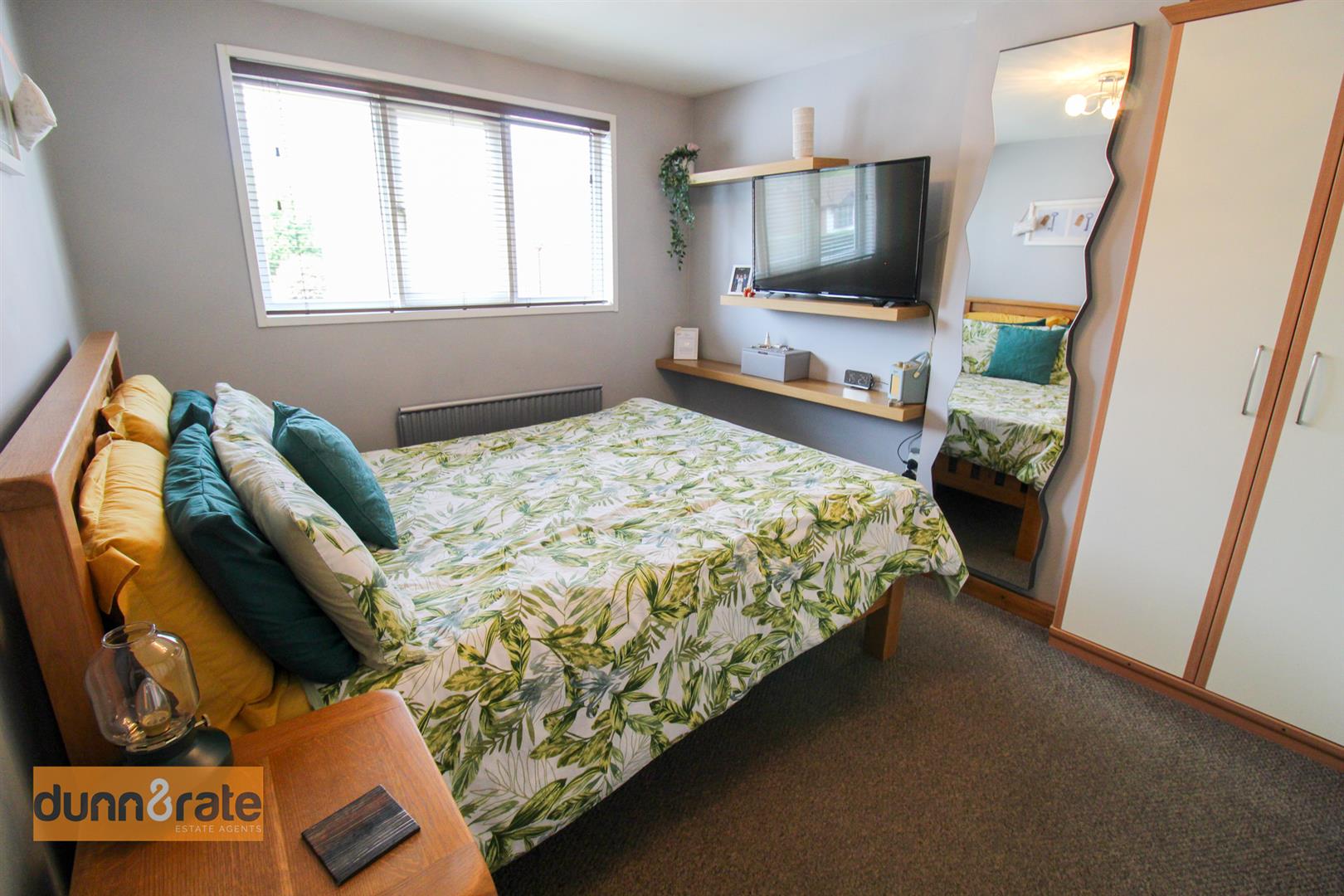 A double glazed window overlooks the front aspect. Fitted with a range of wardrobes. Television point and radiator.