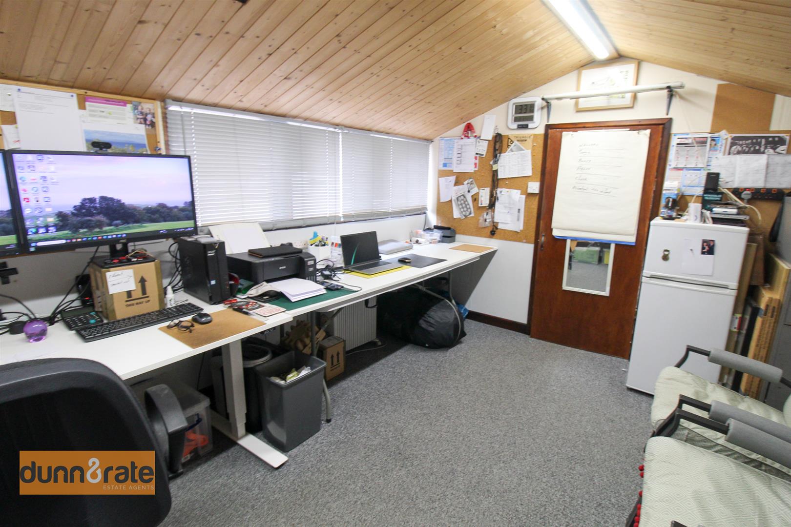 Fully insulated office space with a window to the front. Power and lighting.