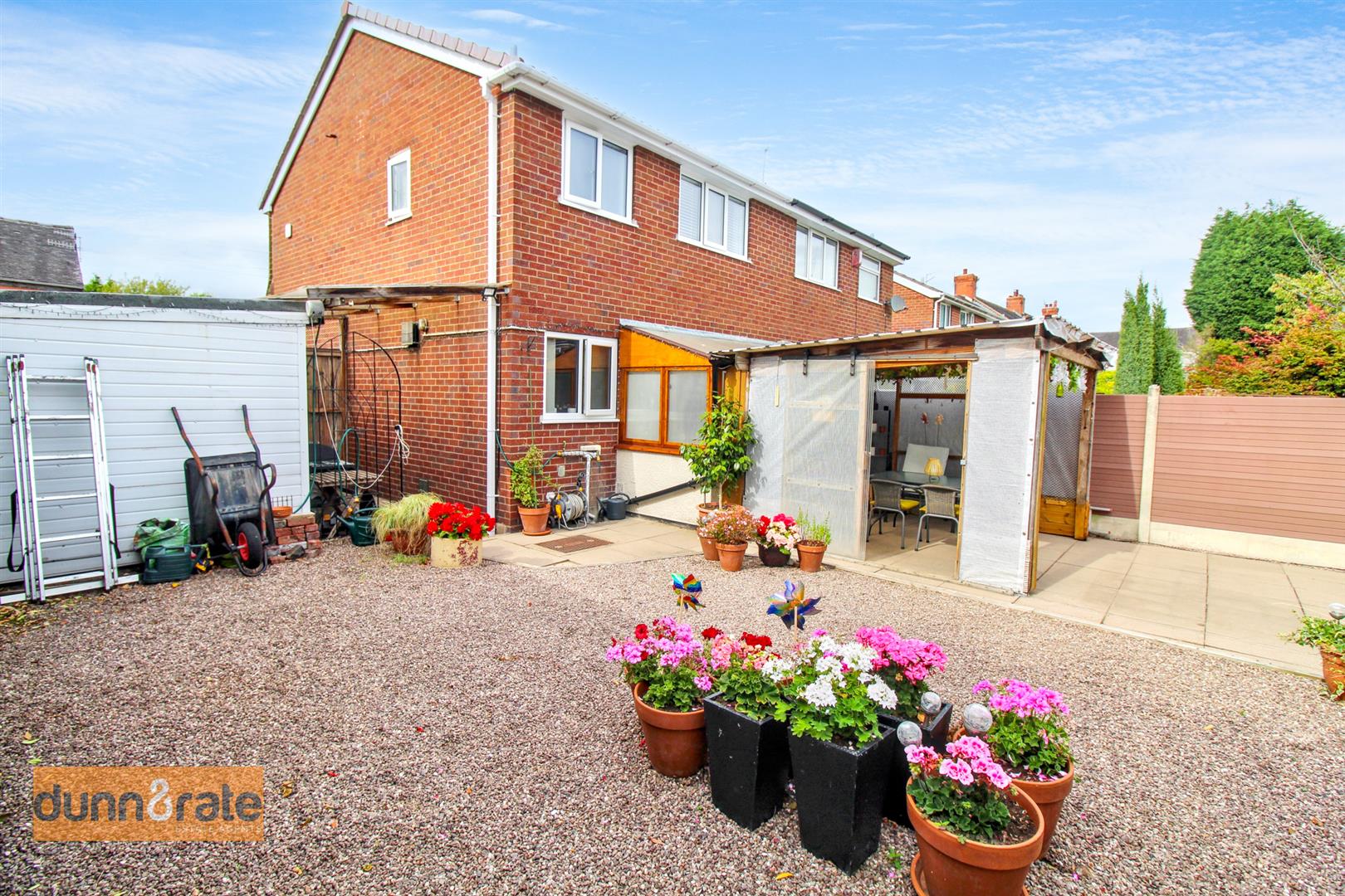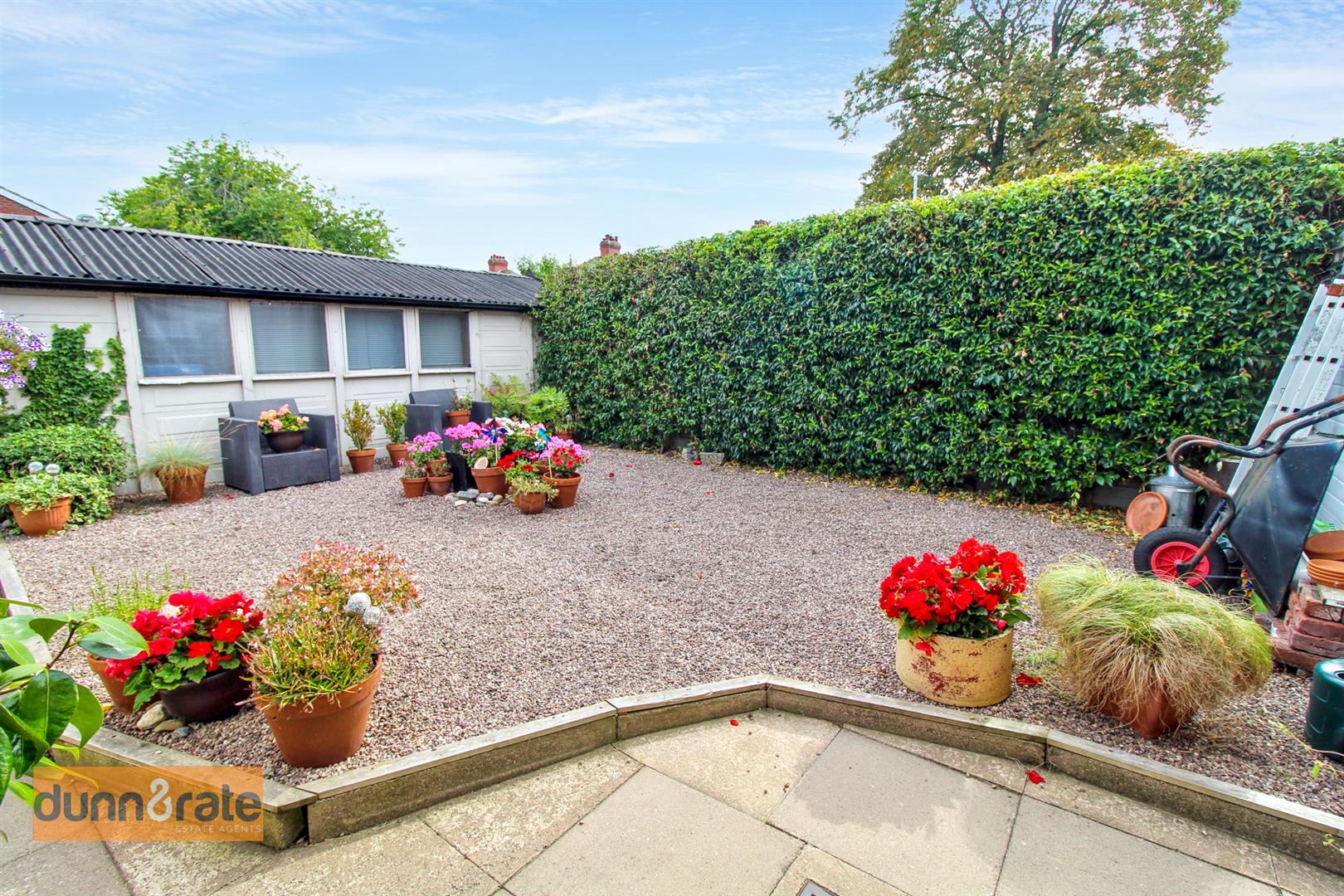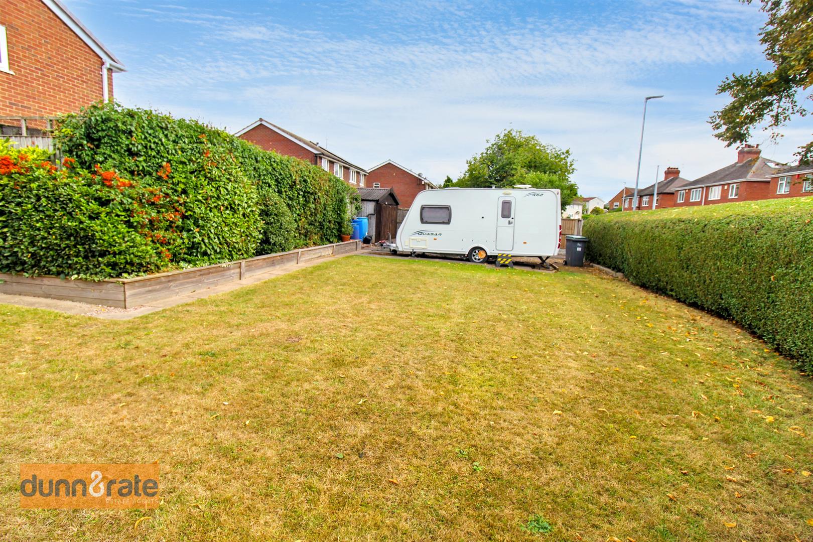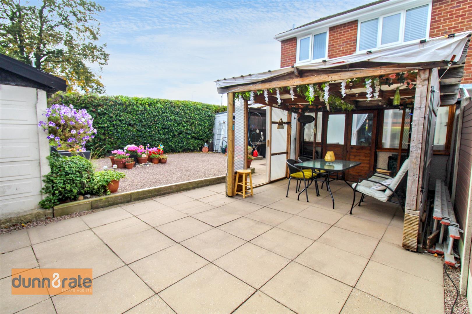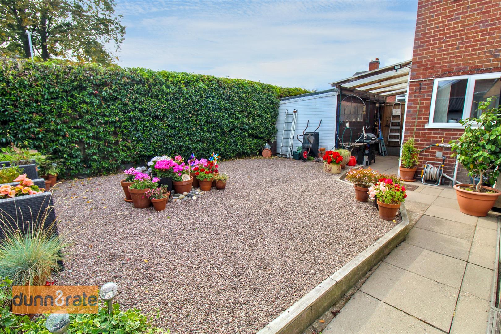 The property sits on an extremely sizable corner plot with gardens to the front, side and rear. To the front there is a hedge border with a paved pathway leading to the entrance door and gravelled area with mature trees and shrubbery. To the side the garden is laid to lawn with a hedge border, double gates lead to a driveway and access to the garage. To the rear the garden is fully enclosed with a paved patio seating area with wooden sheltered pergola with power and lighting. A gravelled area and access to the three large garden sheds, workshop and office space.