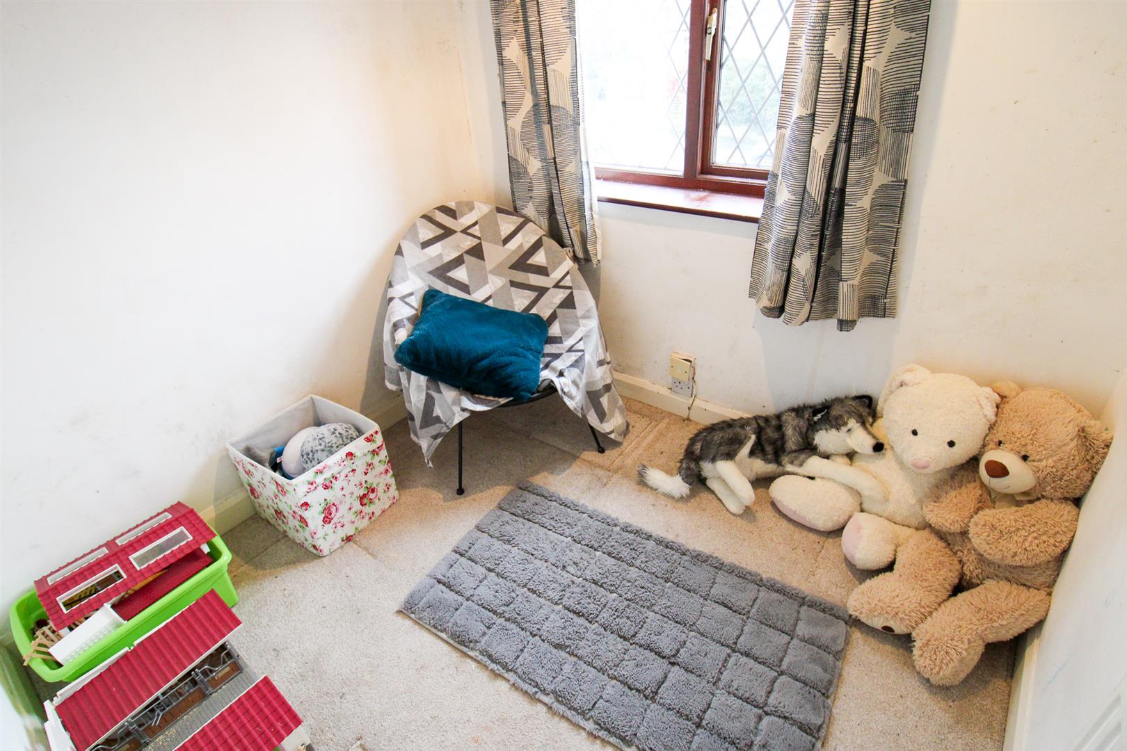 A single glazed bay window, with stained glass, looks out to the font aspect. Open fireplace, column radiator and TV point.