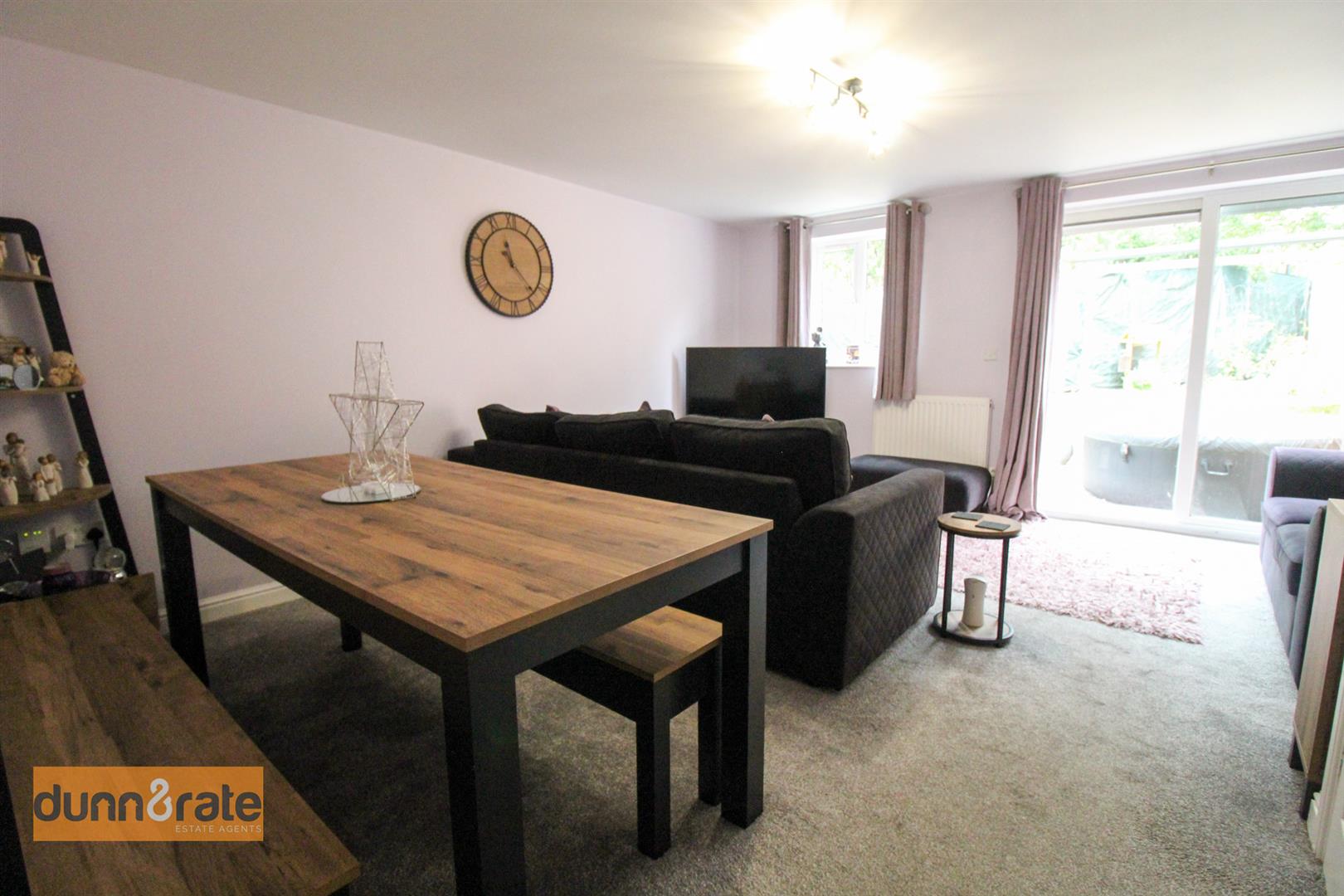 A UPVC window looks out to the rear aspect, coupled with UPVC patio doors that open on to the rear garden. TV point and two radiators, storage cupboard. Space for dining table and chairs.