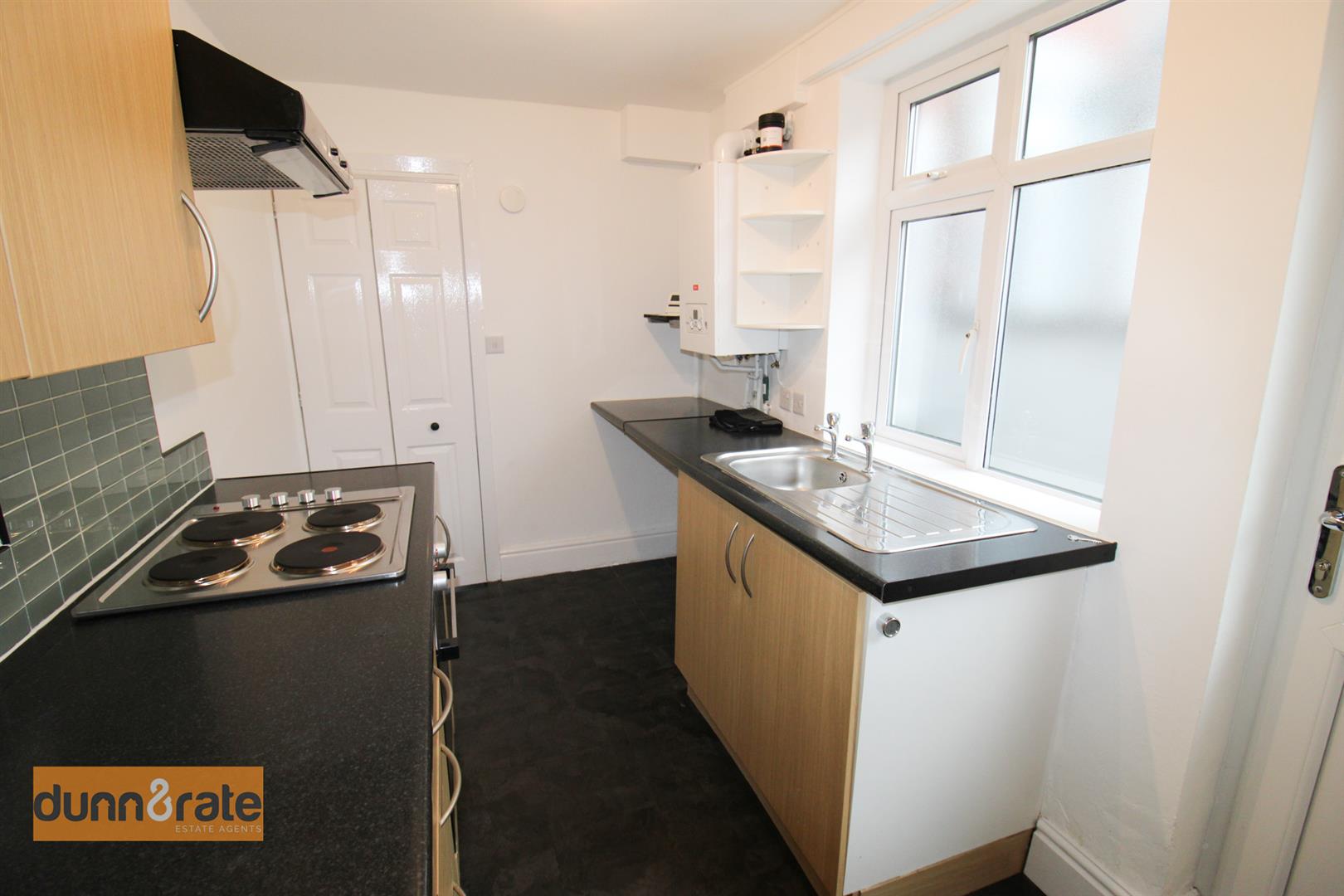 A UPVC window looks out to the side aspect and a UPVC door opens to the side yard. Fitted with a range of wall and base storage units, and coordinating works surface areas. Stainless steel inset sink and drainer, electric oven and hob with extractor fan above. Space and plumbing for a washing machine and fridge/freezer. Central heating boiler and radiator.