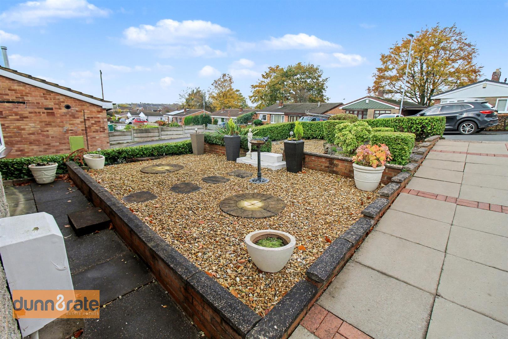 To the front the property has a paved driveway leading down the side of the property. The front garden is landscaped with gravelled areas and paved stepping stones. To the rear the garden is fully enclosed and accessed through a side access gate. Steps lead up to a gravelled seating area, the remaining part of the garden is laid to lawn with mature shrubbery and flowerbeds and a hedge border. Two garden sheds.