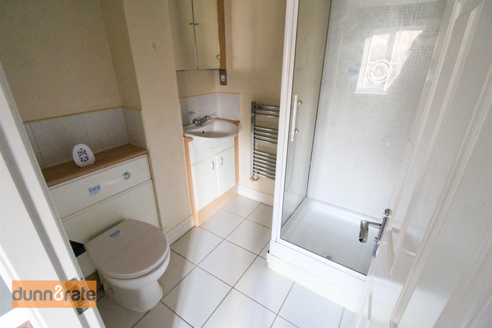 Fitted with a low level W.C, shower unit and wash hand basin. Ladder style towel radiator.