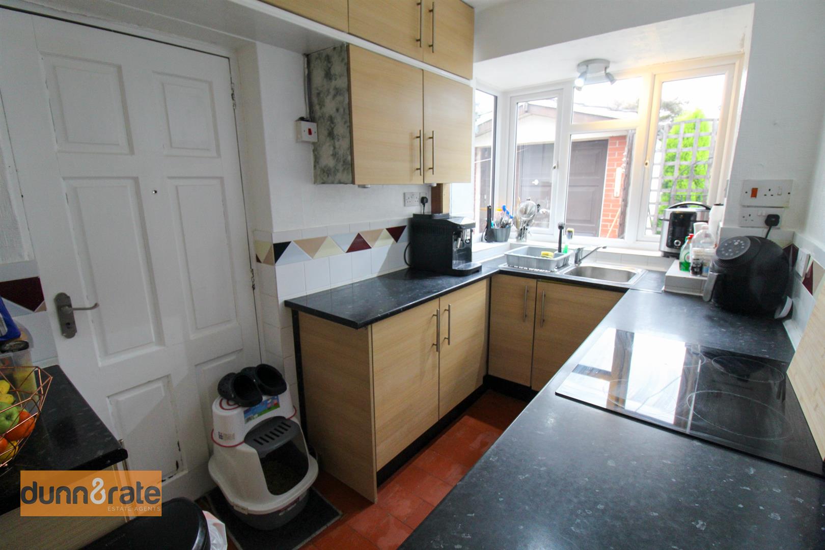 A double glazed window overlooks the side aspect coupled with an access door leading to the side. Fitted with a range of wall and base storage units with inset stainless steel sink unit and side drainer. Coordinating work surface areas and integrated electric oven and hob. Space and plumbing for fridge/freezer and washing machine. Radiator.