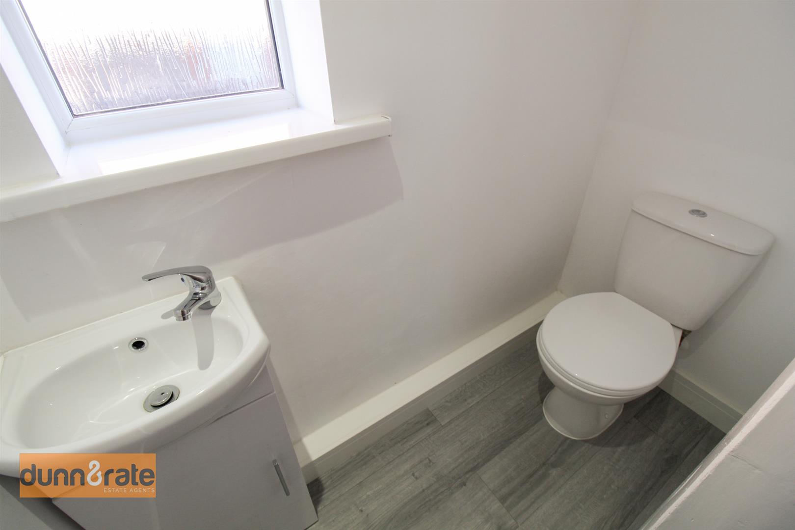 A double glazed window overlooks the side aspect. Fitted with a low level W.C and vanity hand wash basin. Ceiling spotlights and extractor fan.
