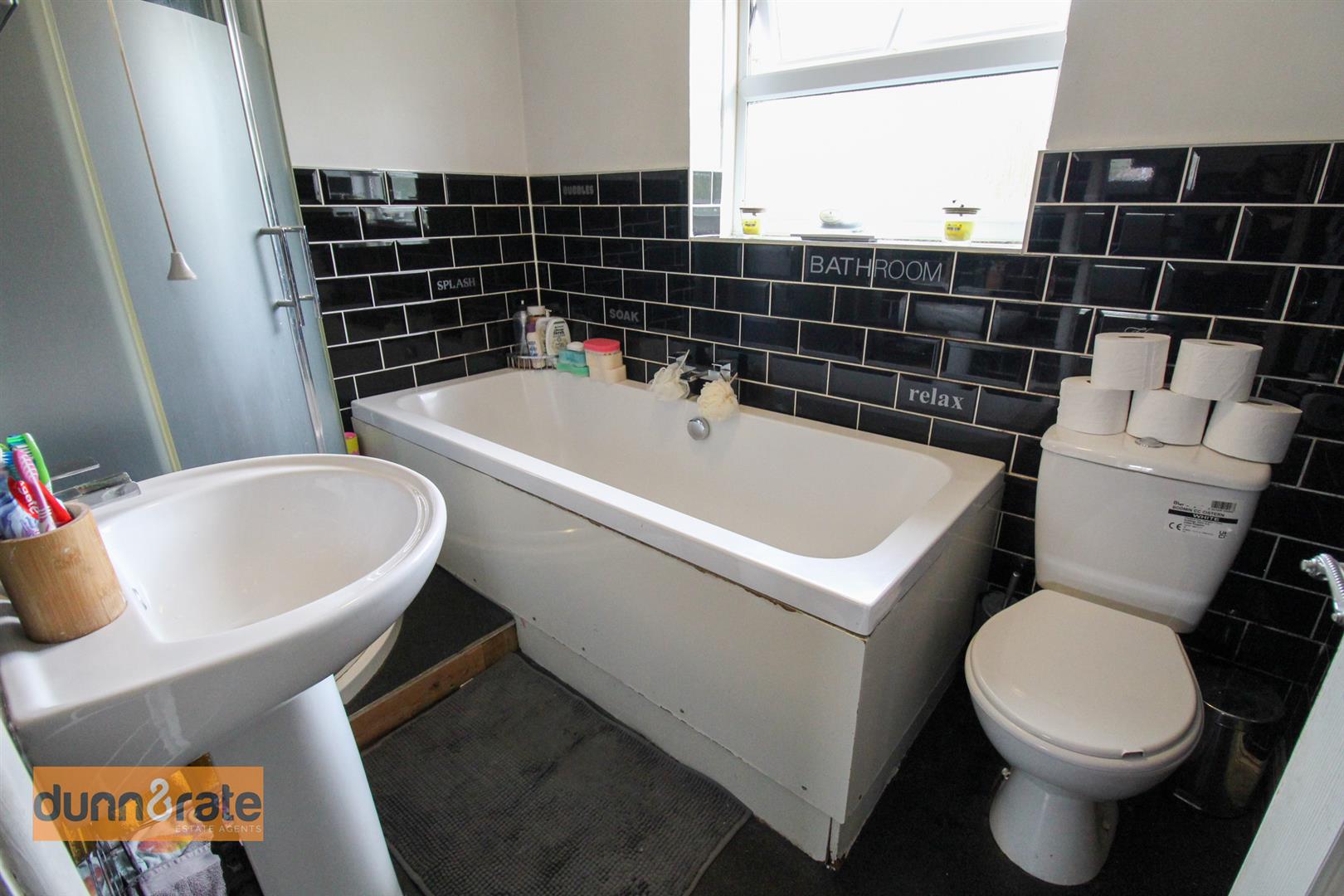 A double glazed window overlooks the rear aspect. Fitted with a suite comprising bath, seperate shower unit, low level W.C and wash hand basin. Partly tiled walls and ladder style radiator. Extractor fan.