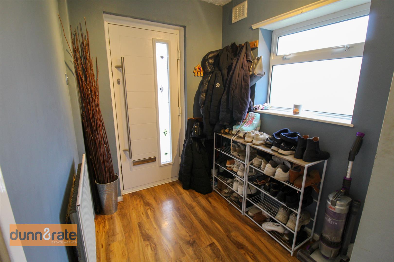 The property has a composite entrance door to the front aspect coupled with a double glazed window to the side. Radiator. Stairs lead to the first floor.
