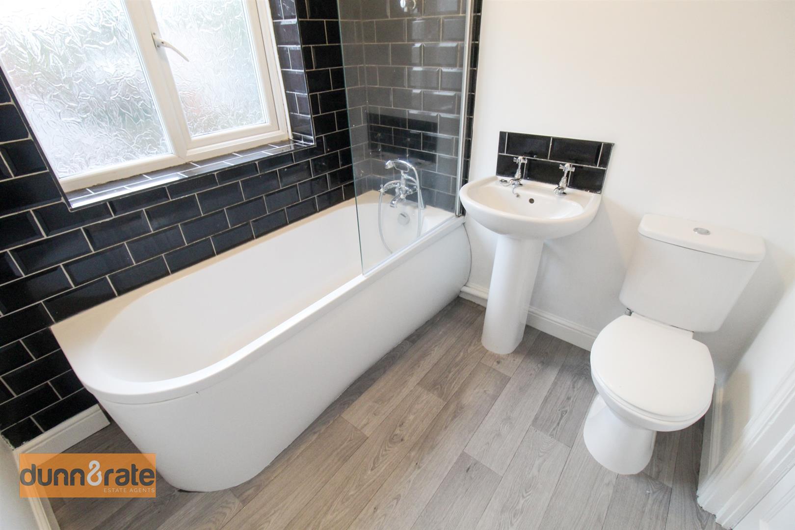 A double glazed window overlooks the rear aspect. Fitted with a low level W.C and wash hand basin with tiled splashback.