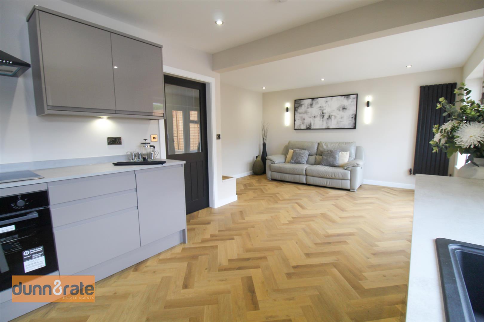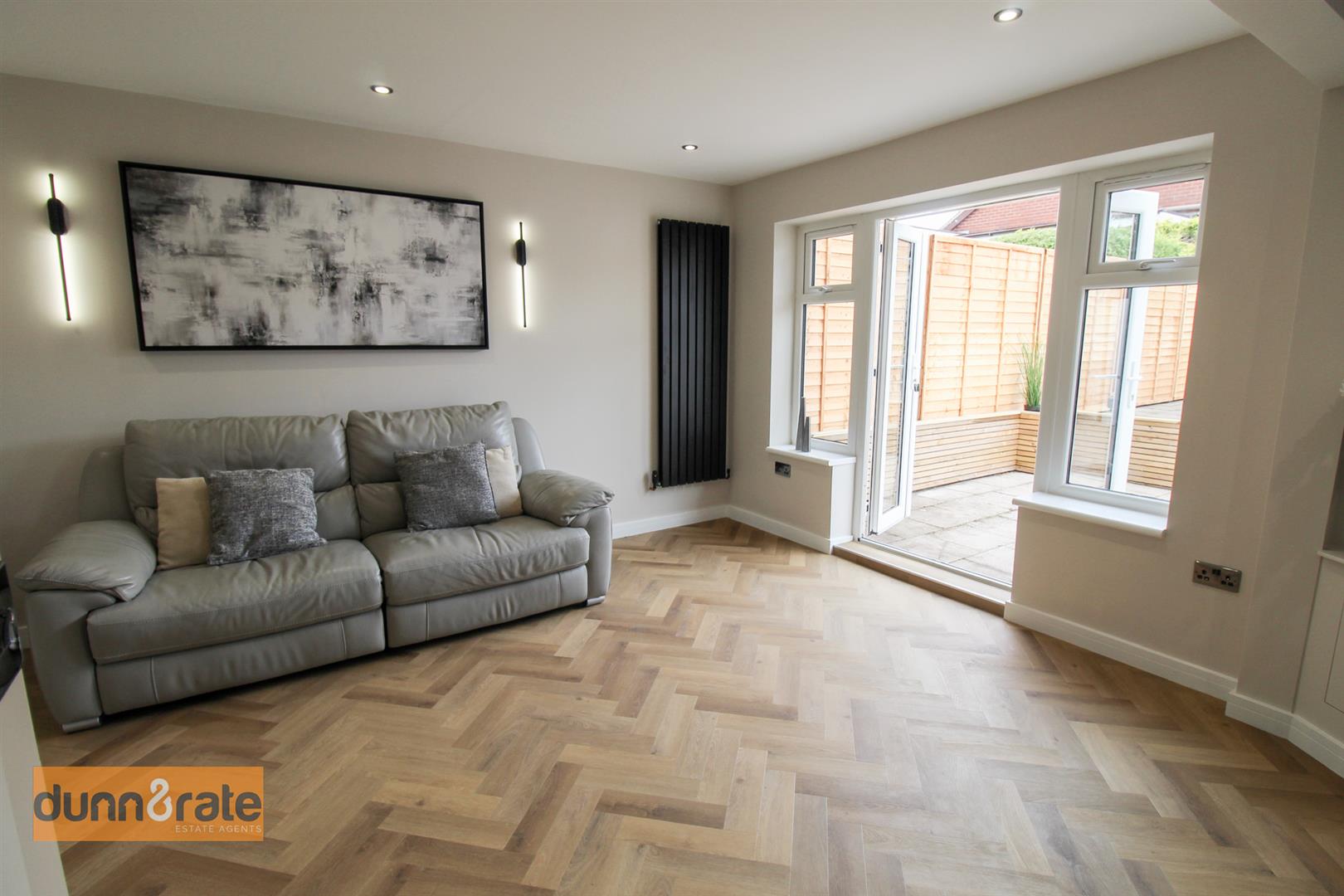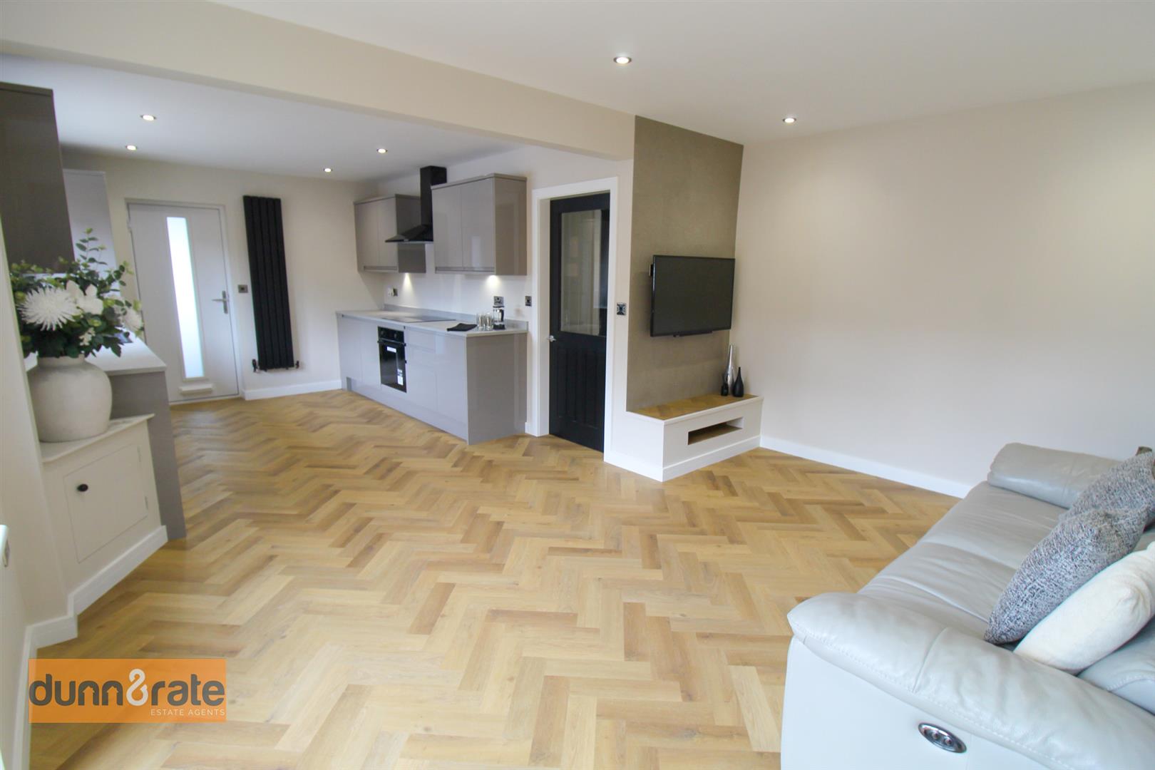 The property is accessed via a composite door to the side aspect. The open space lounge/dining and kitchen area has a double glazed window to the rear aspect coupled with double glazed patio doors. The kitchen area is fitted with a range of wall and base storage units with inset asterite sink unit and side drainer. Coordinating work surface areas and integrated appliances include a electric oven, induction hob with cooker hood above, fridge/freezer, dishwasher and washing machine. Ceiling spotlights and television point. LVT herringbone flooring with two vertical height radiators.