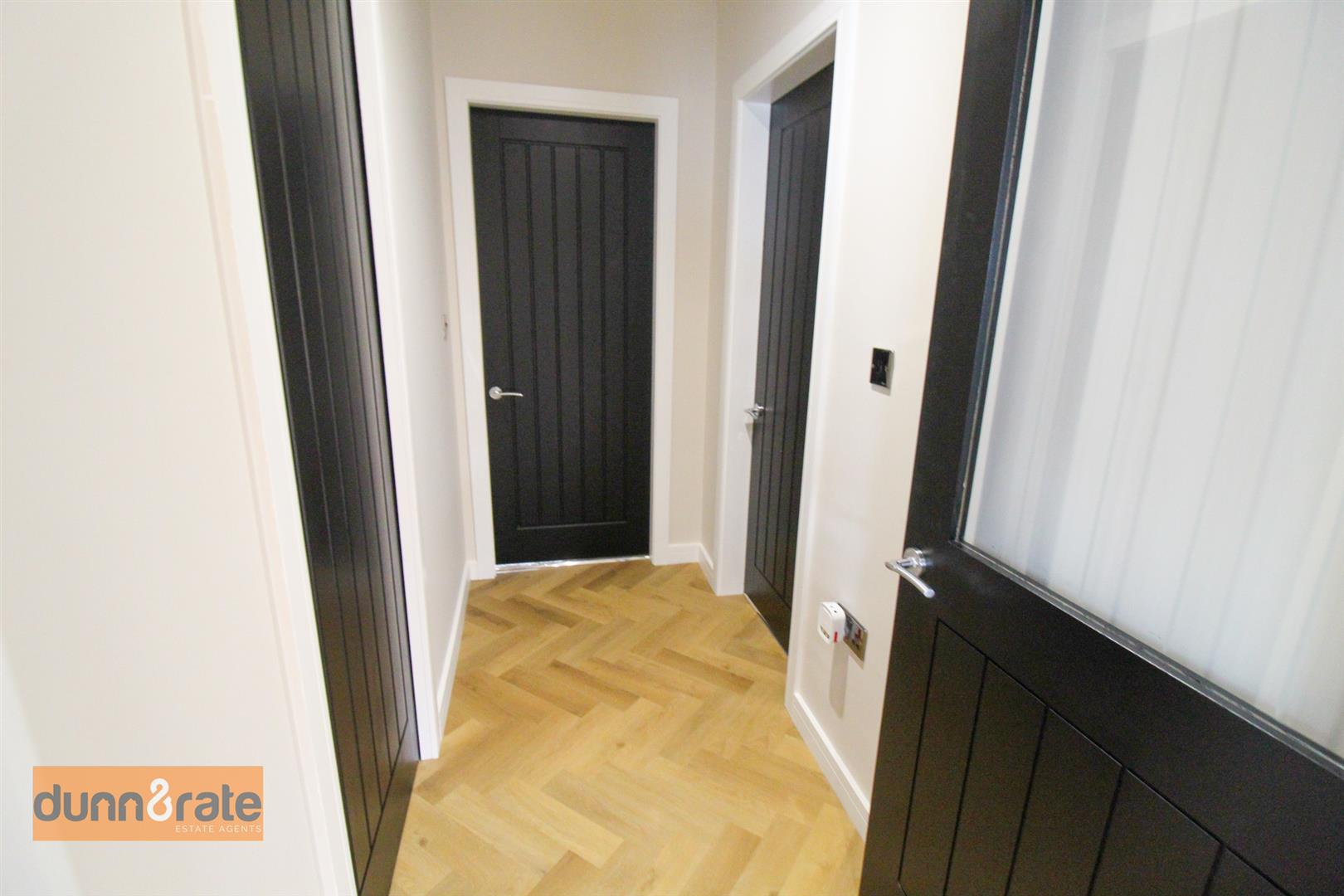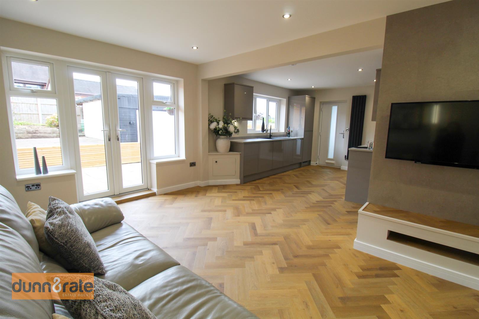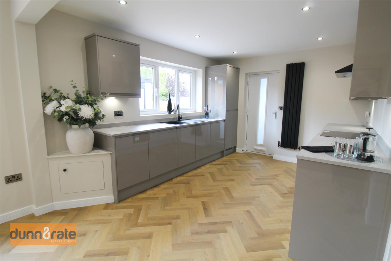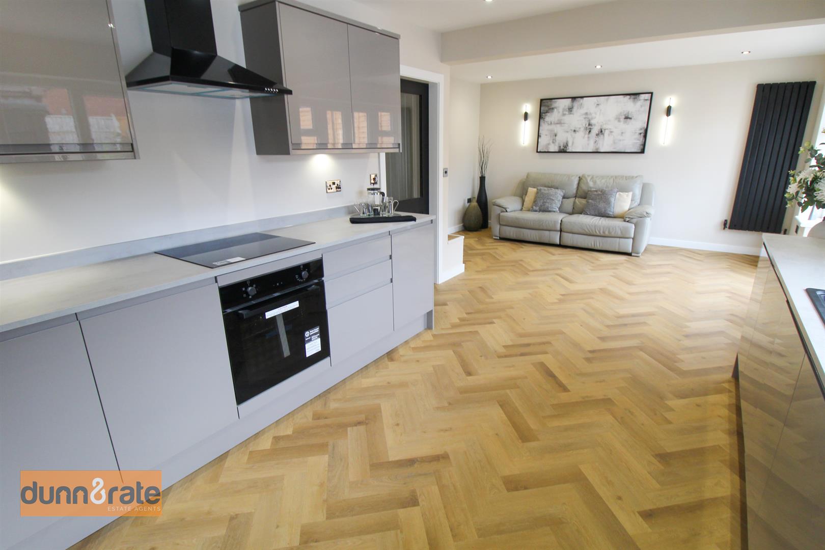 The property is accessed via a composite door to the side aspect. The open space lounge/dining and kitchen area has a double glazed window to the rear aspect coupled with double glazed patio doors. The kitchen area is fitted with a range of wall and base storage units with inset asterite sink unit and side drainer. Coordinating work surface areas and integrated appliances include a electric oven, induction hob with cooker hood above, fridge/freezer, dishwasher and washing machine. Ceiling spotlights and television point. LVT herringbone flooring with two vertical height radiators.