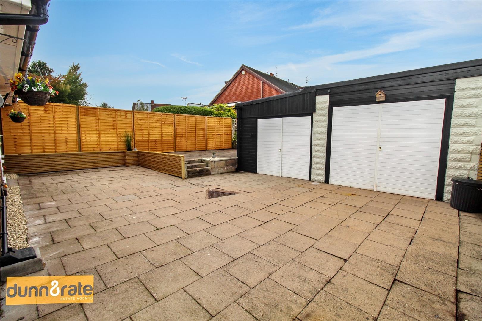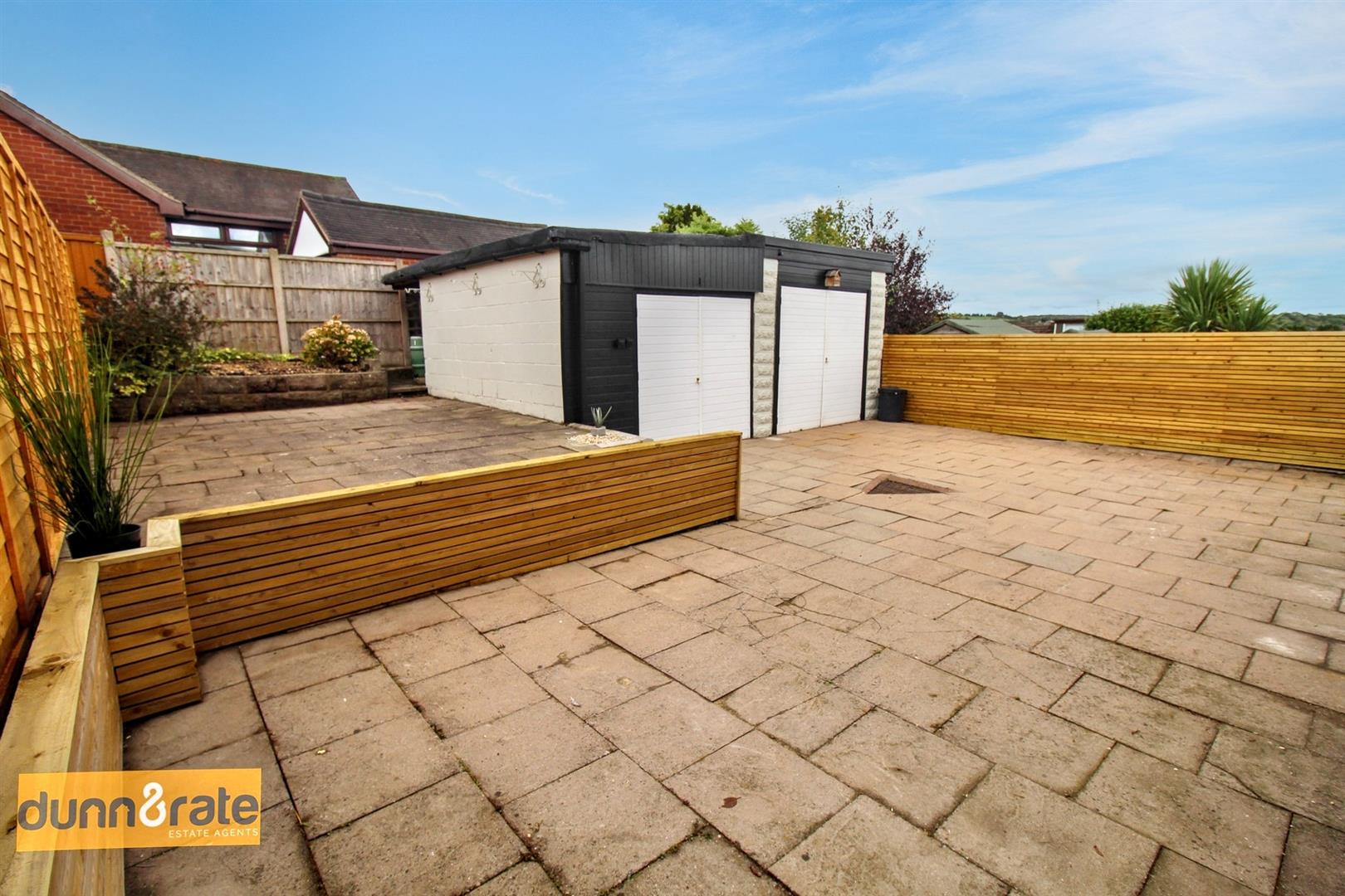 To the front there is a paved driveway leading to the carport. The frontage is laid with artificial lawn with a paved inset feature. To the side there is access to a carport with double doors to the front and rear. To the rear the garden is fully enclosed and laid with paving and a panelled fenced border. With access to the double garage.